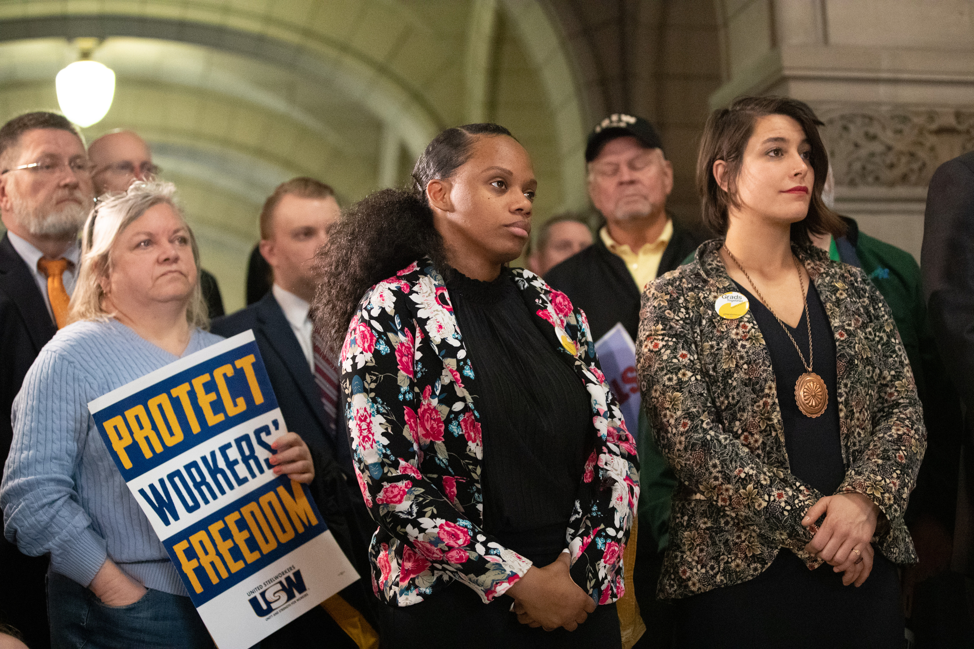 Pittsburgh, Pa. − March 14, 2019 − Senators Lindsey M. Williams, Jay Costa, and Vincent J. Hughes, joined by local elected officials, Allegheny County Labor Council members, and a crowd of union workers, announced the introduction of the Workplace Freedom Act today at the Allegheny County Courthouse.